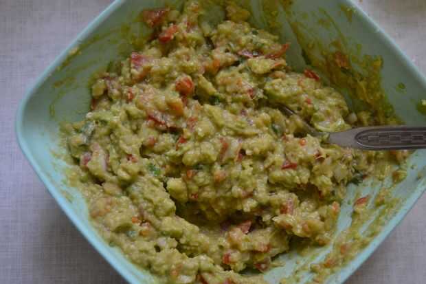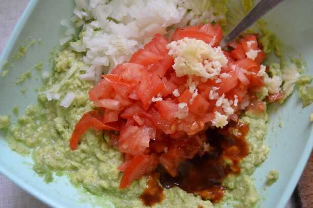 cortar el tomate y cebolla en dados pequeños. Añadir el tomate y la cebolla al aguacate, presione el ajo en él, mezcla todo y luego añadir limejuice, cilantro picado, chipotle al gusto y sazonar con sal y pimienta.