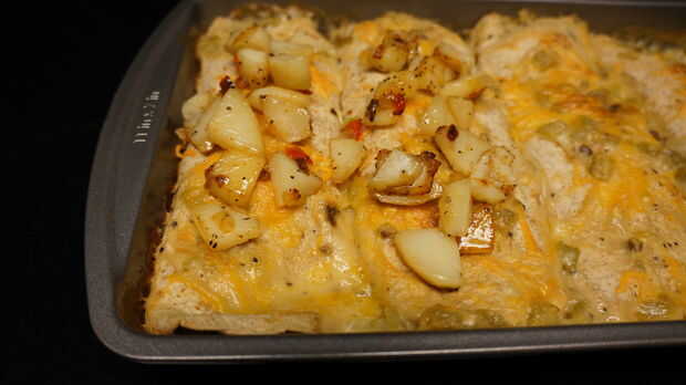 He añadido unas patatas por encima de los burritos de los últimos cinco minutos de la hornada para utilizar encima de las papas restantes en un par de los burritos.