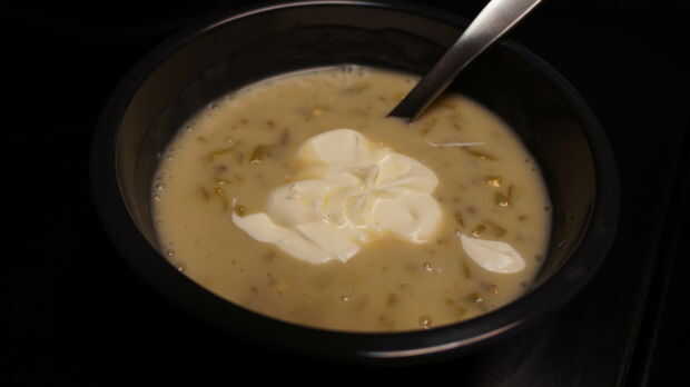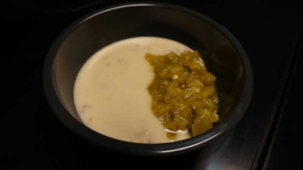 Crema de setas sopa, chile verde, ajo y Crema Mexicana o crema agria y sazone al gusto.