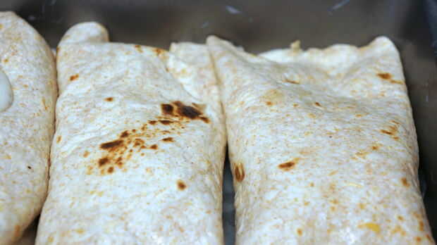 Establecer los burritos de la costura lateral en el pan