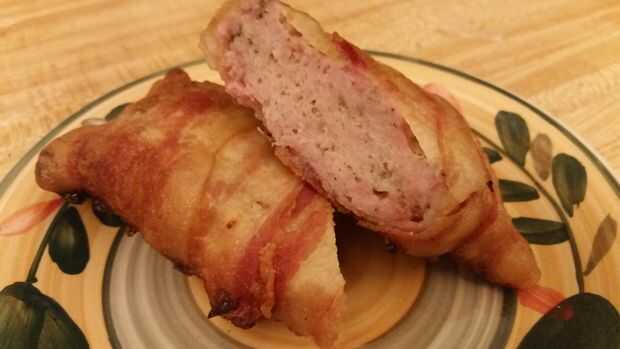 Delish. El uno y sólo tocino frito knish hecho Coney Island de Nueva York del perrito caliente del carro estilo. Con un lado del tocino dentro para un mejor nosh. Blasfemas, pero usted puede lavarlo con una crema de huevo de Brooklyn.Realmente parece