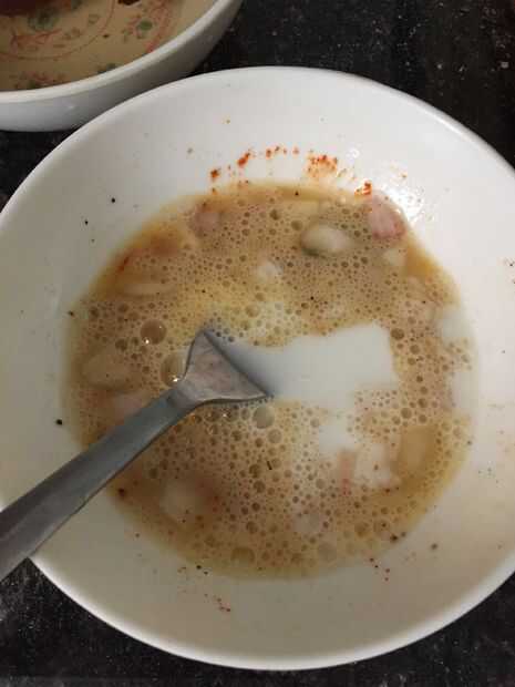 4 huevo bate añadir pimentón, sal, pimienta, ajo en polvo