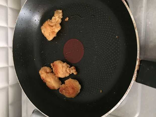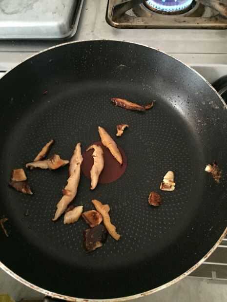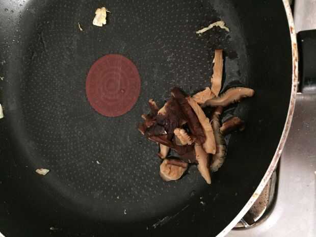 6 freir hongos en una gota de aceite en una sartén antiadherente