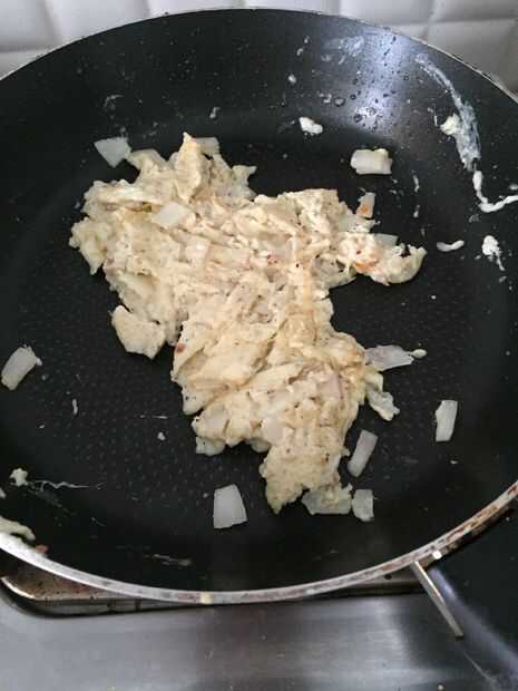 5 cocinar huevo del paso 4, revolver a fuego lento