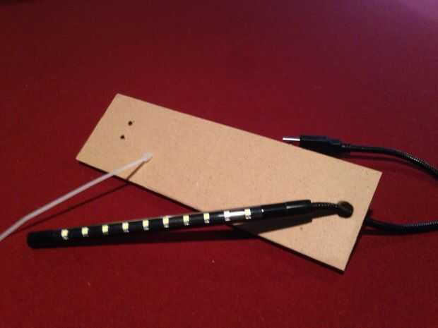 Para la marquesina iluminada, nos quedamos simple. Utilizamos un barato USB powered LED libro luz y sujeta con un lazo de agujero y zip. La parte superior de las estancias de panel de vidrio en lugar de una ranura en T-que moldea, el fondo mantiene en su lugar usando un pedazo de plástico ventana canalización (encontrado en una tienda de mejoras para el hogar) y un pequeño trozo de madera (en una tienda de hobby). La marquesina se puede acceder después de la arcada está completamente montada.
