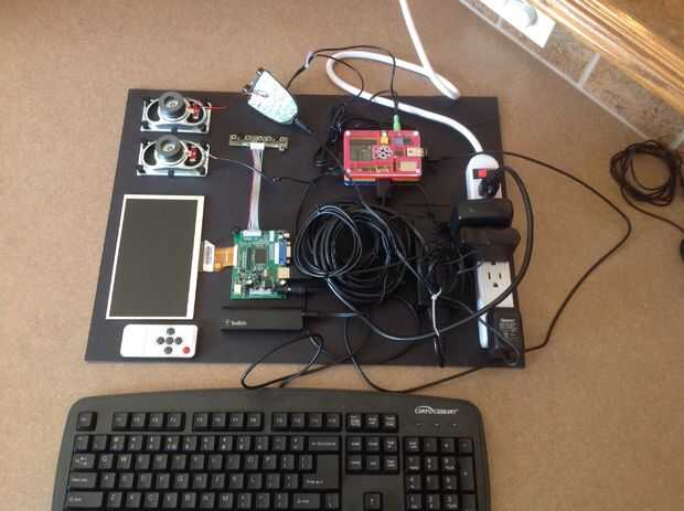 Comenzamos en el verano. Lo primero que hicimos fue comprar un Raspberry Pi modelo B (el nuevo y mejorado B + no había sido liberado aún). También compramos algunos imprescindible para conseguirlo ya está en marcha: una tarjeta SD concierto 16 con PiMAME instalado en él (ahora se llama PiPlay), un micro USB cable de alimentación el Pi y un adaptador USB nano WiFi. Aunque no es necesario, compramos un caso.