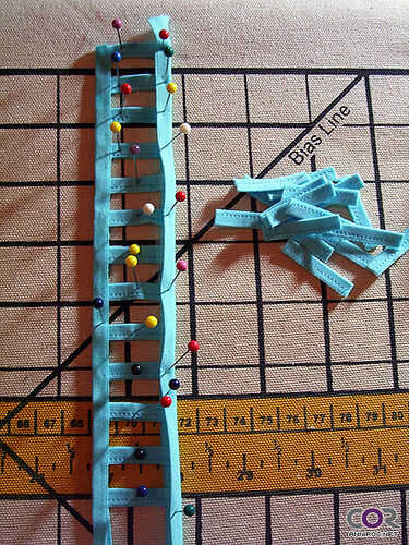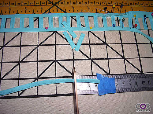 Esto creará los peldaños de la escalera azul. Se cortaron en trozos de 3cm y colocar 2 cm aparte.