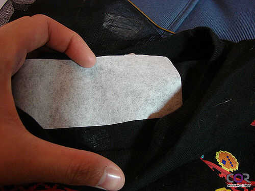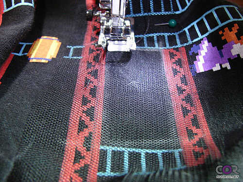 El estabilizador ayuda a alimentar al tejido de punto a través de la máquina de coser mientras proporciona soporte para las puntadas de Satén. Probablemente también fortalecerá la ventana también.