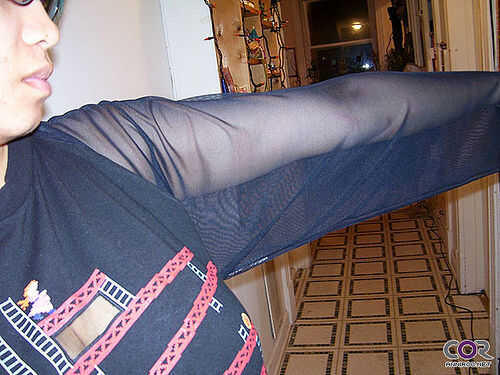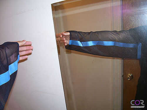 Utiliza la manga raglán exceso desechada como un patrón para cortar y coser la otra manga.