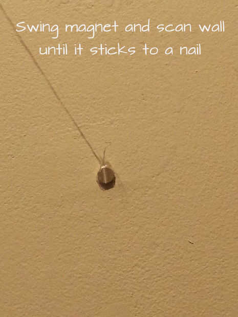 - Usando este método, también sabes dónde están los clavos existentes, para que pueda evitar clavar un clavo o tornillo en uno de ellos.