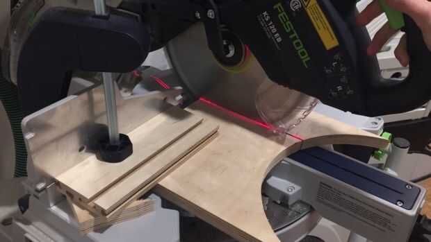 Se corta un trozo de madera contrachapada de 3/4" en la Sierra de inglete. Son dos piezas requiere medición 3" ancho y unos 7" de largo.