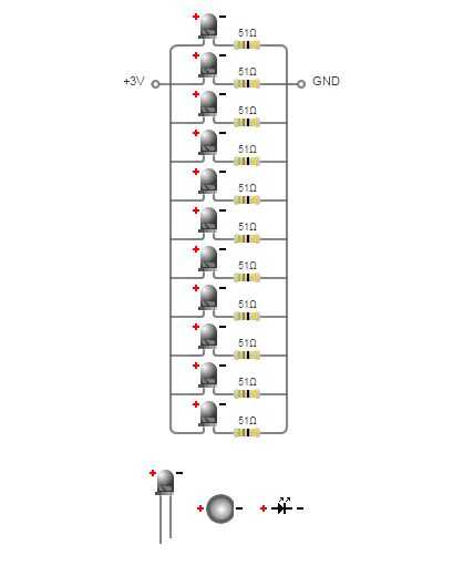 Entonces, hay que montar los LEDs. El LED tiene una pierna más larga y una corta. Poner las piernas más cerca del centro, y la más corta hacia fuera de las piernas.