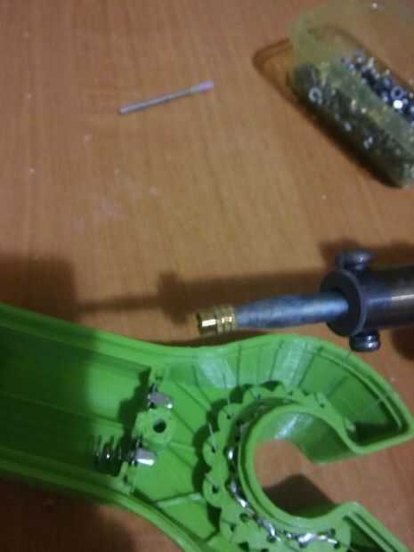 Mientras que el soldador esté caliente, coloque el metal por encima del agujero y empuje suavemente hacia abajo.