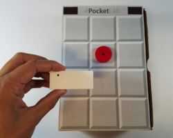 Colocar un imán en la rejilla superior de la caja en una de las plazas del centro y coloque el sensor de PocketLab en el cuadrado inferior izquierdo.