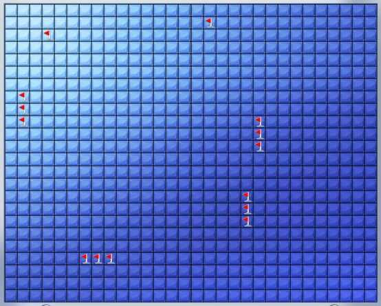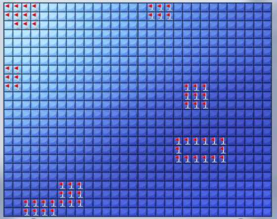 Mi lienzo fue hecho en una cuadrícula de 24 x 30 buscaminas con 10 minas, encontré que esta red funciona mejor.