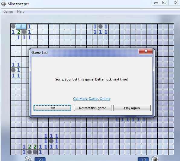 Se debe al azar, haga clic en encontrar una mina - haga clic en él y averiguar dónde están las minas.