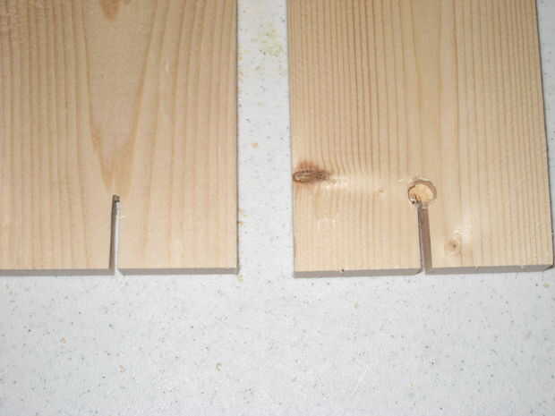 A continuación solía la sierra caladora para cortar la arboleda de 15/16" de largo. Esto funcionó ok, no muy recto, pero consiguió el trabajo. Hubiera sido mejor si era peanas.