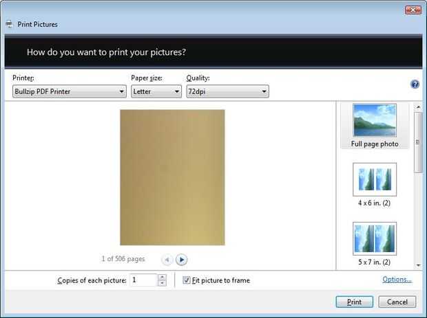 2) Seleccione "Bullzip PDF Printer" como la impresora