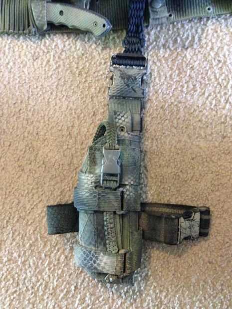 Mina se une a un sistema de gota de la pierna como se puede ver. Cuando mi mano derecha cuelga hace se sienta derecho en el mango perfectamente por lo que yo puedo dibujar rápidamente mi arma si la necesito. ¿Por qué lo necesito? Imagínese esto... Está construyendo una fogata... conseguir la comida vas a cocinar. Y escuchar un chasquido de una ramita en la distancia. Mirar alrededor y ver un oso llegando a tomar la comida de ustedes. ¿Cuáles son usted gunna hacer? Seguro que tratas un enfrentamiento mexicano con él... o la bola en la tierra jajaja... pero si eso no funciona... usted no puede dejar atras a lo. Su rifle de caza está fuera del alcance. Tiempo para su arma en este caso peor. Yo no aceptar animales de tiros sin razón. Si mato algo estoy ya sea comerla o manteniendo de comerme. Llevan un gran calibre. No una 9 mm.