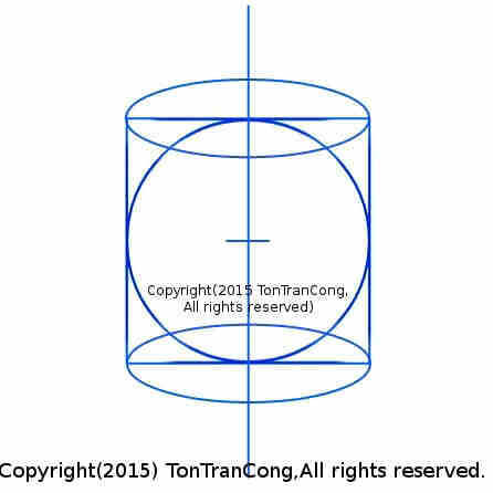 Figura de una esfera tocando dos tapas y la pared de un cilindro. Las hojas de planas se utilizará para representar la cáscara esférica
