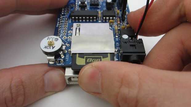Una vez que los archivos están en la tarjeta SD, conecte la tarjeta en el protector de la onda.
