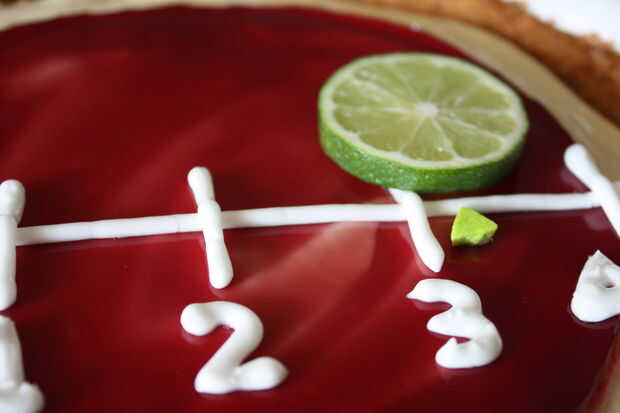 Poner una rebanada de cal en el gráfico como la circunferencia de la gráfica, le presenta también el pastel de una forma, una pequeña pista de lo que su sabor es como!