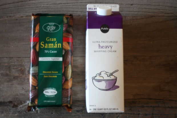 (Puede modificar estas cantidades tanto como desee dependiendo de sus propósitos, lo único importante es permanecer en una relación 1:1, por ejemplo, 3 tazas de chocolate y 3 tazas de crema)