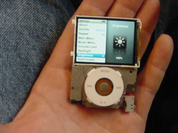 El Ipod (Nano, 4GB, 3ra generación) el botón de "play" en la rueda dejó de funcionar. Utiliza un cuchillo y separa las mitades (no sé nada de Ipods. Se dispone de una herramienta de plástico que lleva las mitades separadas)