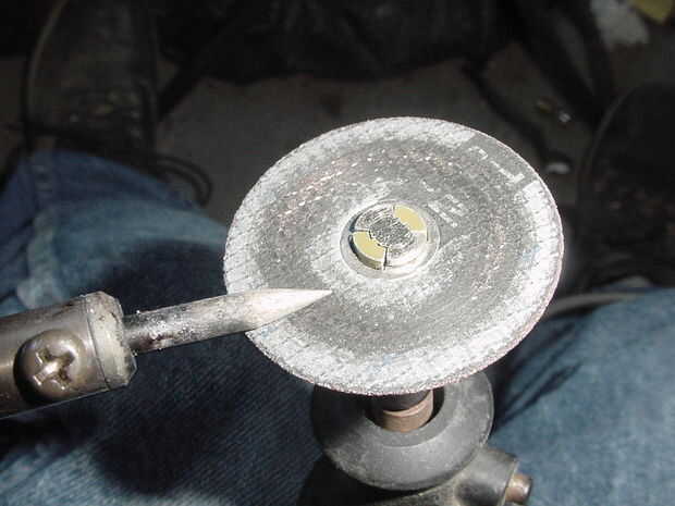 Para el soldador, utiliza una rueda de corte en mi Dremel y utiliza la parte plana de la rueda de corte para formar la punta del soldador. Seguí el contorno de la punta y mantuvimos hasta la aguja afilada.