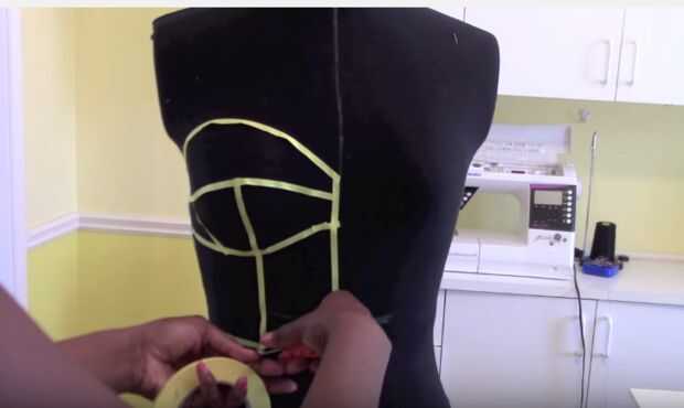 Primero diseñé el bustier en mi forma de vestido con drapeado cinta.