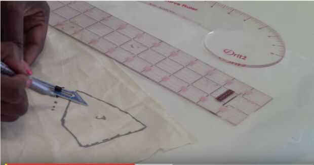 Después de hacer todas las piezas del patrón y cortar hacia fuera, añadir margen de costura a cada pieza. Cada pieza tiene un margen de costura de 1/2 pulgada añadida. Usar reglas y una costura calibre.