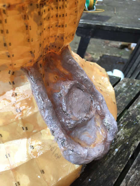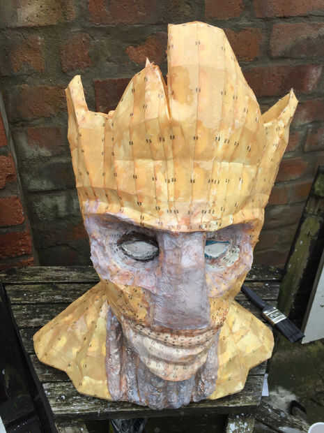 Debido al tamaño y complejidad de este modelo, utilicé resina de fibra de vidrio en el interior de la zona del hombro y el cuello antes de continuar con la cara y corona. Esto ayudó a streanthen el modelo.