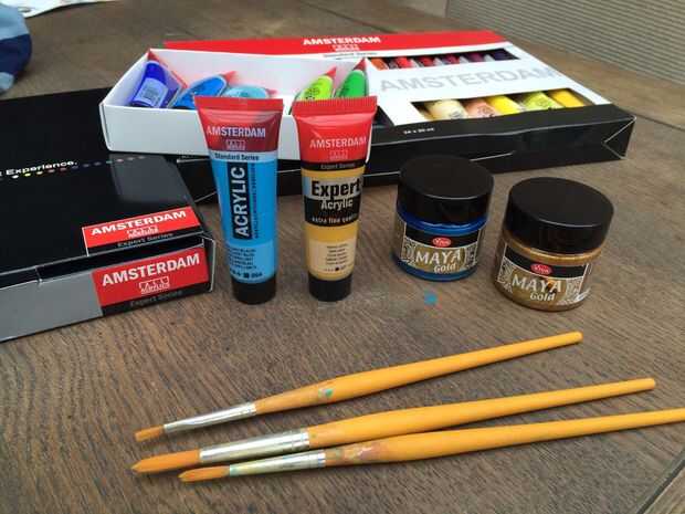 Para el toque final he usado Royal Talens 'Amsterdam' pintura acrílica serie. Yo no prime la escultura. Utilicé la pintura directamente en la escultura. Hacer varias capas de ellos para crear algunos deseado efecto pero más de eso más adelante. También para el tocado egipcio usé pintura acrílica metálica por Maya Gold. Grandes cosas! Le da un brillo real.