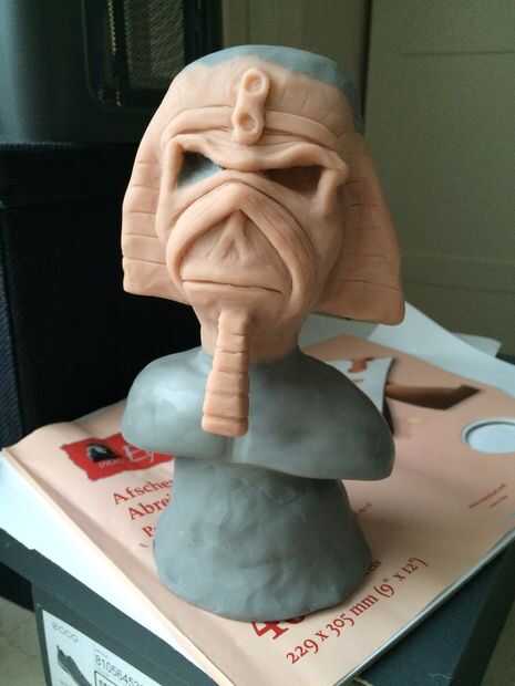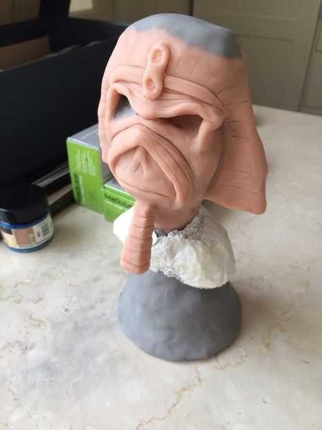 Después de la cabeza se hizo más o menos. Hice una rápida cuece al horno en el horno (15 minutos). De esta manera la cabeza no te dejan y podía usar más presión al colocar más arcilla. No tengo ningún Super Sculpey Original por lo tanto, que utiliza solamente la versión de firma a la izquierda. Decidí que quería probar a hacer un busto de él y el tocado necesita hombros para descansar en el. He añadido más papel y cinta adhesiva para crear la forma de los hombros y cubre en este agradables piezas delgadas de arcilla.