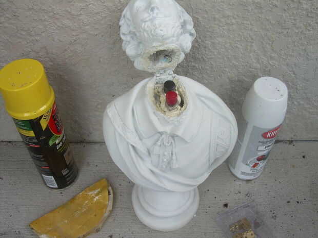 De todos modos ahora usted querrá añadir los botones dentro del busto, un poco aerosol espuma alrededor del interior del cuello, luego un poco alrededor de los botones. Espere para que esto definir y luego cuidadosamente tallar ni agregar espuma hasta que encaje bien en el otro. Su objetivo es hacer los botones desmontables para que puedas obtener al controlador cuando se necesita cambiar las pilas.