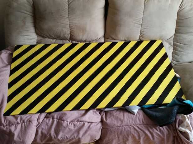 Primero averiguar que desea montar la placa en la pared. Después de medir mi espacio, fui a la ferretería para ver que estaba disponible y precio de los artículos. Luego fui a mi taller para ver lo que ya tenía en la fabricación y otros suministros. Encontré un gran rollo de 2" cinta de vinilo ancho como se muestra arriba. Usé un 2 'x 4' pedazo de madera contrachapada de 1/2" y lo cubrió con la cinta. Esto tomó un tiempo y alineación de la cinta para que se vea como esto era un poco un desafío. Como usted no mira muy de cerca, se ve como líneas rectas, pero voy a ser honesto, es menos que perfecto. Después de cubrir la mesa, recoger su hardware y suministros de fabricación.