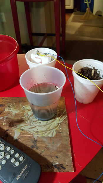 Usé vasos de espuma de poliestireno con suelo y agua para calibrar los ajustes. También puede utilizar el sensor de suelo de clavos es que desea. Tenía suelo seco y agregar agua a la cantidad deseada y tomó nota de las lecturas para obtener un rango. También puede personalizar el mensaje que el dispositivo receptor. Esta configuración monitor 2 plantas diferentes pero planeo añadir más sensores. El receptor está conectado a mayo conectado a mi ordenador si quiero ver cómo es cada planta. Sellado todos los circuitos en una bolsa acolchada para proteger pero yo expongo el transmisor IR y RF. Había grabado las antenas al Polo para una mejor señal.