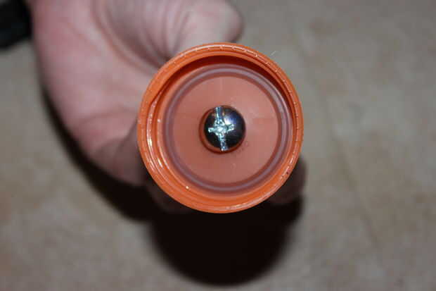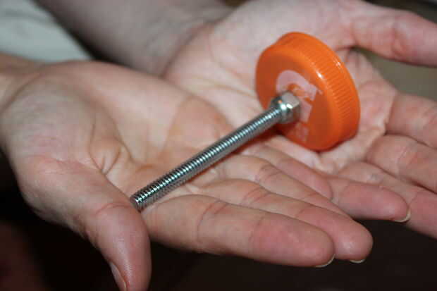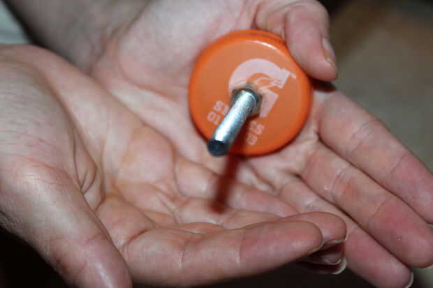 Cuando el agujero es lo suficientemente grande para el 1/4-20 x 4 perno quepa cómodamente, coloque la tuerca de 1/4-20
