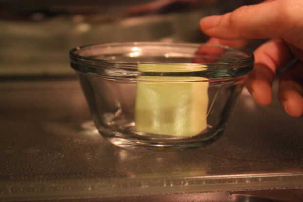 Una vez que la diversión popping, derretir la mantequilla en el microondas. Sin embargo mucho tu corazón desea y dependiendo de cuántas bocas vas a alimentar. Para mí creo que unas 3 cucharadas.