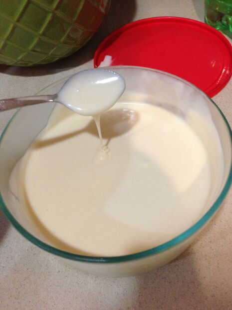 no quieres que esto sea tan grueso como guinda de la torta y no tan delgada e hinchados como crema batida. Probablemente debe estar en alguna parte entre hielo de papel canela y cool whip. un buen lo que prueba que es la consisancy correcta es sacar algunos algunos para arriba en una cuchara. Si se queda en la cuchara es demasiado espesa y es necesario añadir más para batir crema de leche. Si cae como agua luego es demasiado fina y es necesario añadir más azúcar. Si gotea hacia fuera pero no lo es todo Aguado es perfecto.