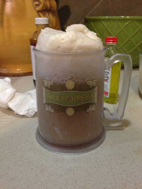 Ahora debe agregar lentamente en 12 onzas de soda de crema. Asegúrese de que no se agrega demasiado rápido ya que producirá una cantidad extrema de espuma incontrolable. (agrego una foto de lo que sucedió cuando vierte demasiado rápido) una vez haya agregado todos la soda revuelva lentamente siendo cuidadoso no para revolver todo el proceso de carbonatación. después de hecho esto es probablemente un color orangeish color marrón grisáceo. Si usted está bien con esto entonces dejarlo pero si tu como wnt se naranja luego agregar unas gotas de amarillo y yo morir y revolver lentamente.