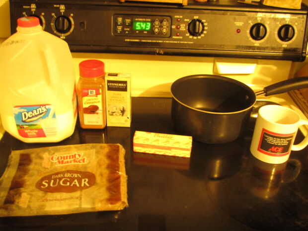 Para esta receta necesitarás una taza de leche, dos cucharadas de azúcar moreno, canela, una cucharadita de extracto de vainilla y dos cucharadas de mantequilla por leche. Usted también necesitará una cacerola (tamaño depende de la cantidad), una estufa y una taza.