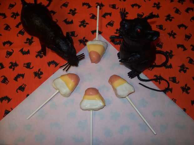 Increíblemente el relleno requiere sólo Candy Corn y mantequilla de cacahuete cremosa y para mantener con la experiencia de Butterfinger, el pop se sumerge luego en derretimientos de blanco/amarillo/naranja dulce para un look de maíz dulce festivo.