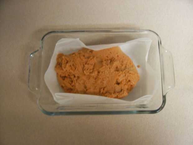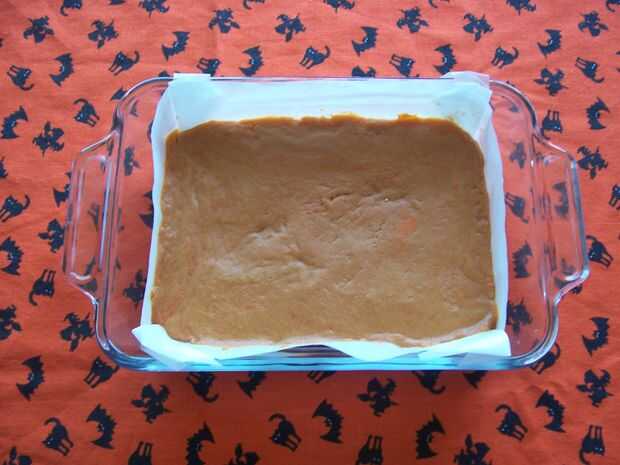 Retirar del MW y agregue mantequilla de maní hasta que esté suave. Puede aparecer como una gruesa gob, pero una vez que se extiende en la bandeja preparada va a estar bien.