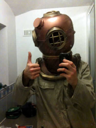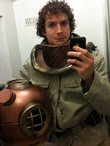He decidido que más bien de intentar construir un traje espacial de neo-Victorian completamente funcional, yo iría con un traje de buzo de alta mar más reconocible, construido a una plantilla similar. Si una explicación, podría reclamar que era un traje prototipo de pioneros con programas espaciales muy tempranos o que había sido impregnado por un Alien facehugger mientras exploraba el fondo del océano. De cualquier manera, tenía una historia totalmente verosímil. Estas cosas son importantes.
