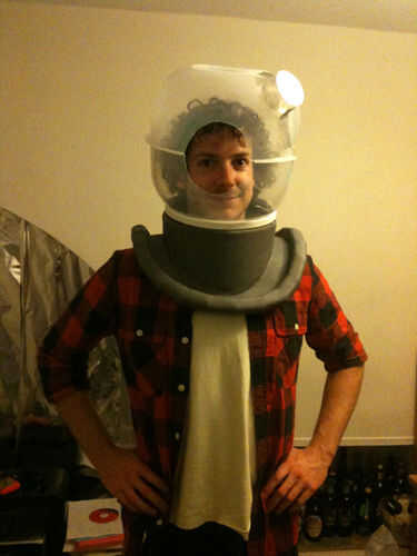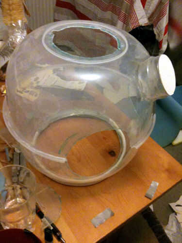 No pegar los ojos de buey para el resto del casco, como vas a pintar por separado. Ahora debe tener algo que, si lleva en su cabeza, le hace parecerse a un watercooler. Hey, hay una idea para el traje del año que viene...