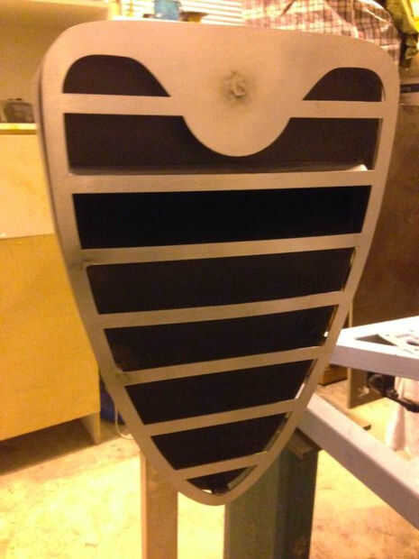 Soldadura de tachuela la rejilla en la ranura del correo y los espaciadores. Perfore un orificio de diámetro 6mm en la parrilla a la línea de arriba con el espaciador en forma de "U" superior y enchufe de soldadura para la rejilla (esto será ocultado ser la divisa de Alfa)