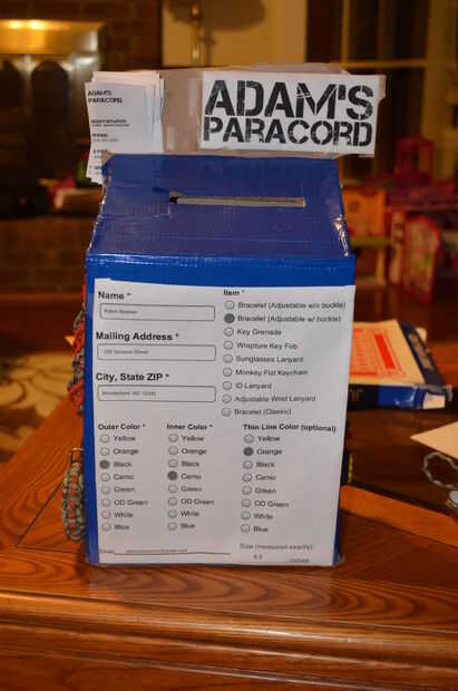 Para hacerlo, corte una pieza a la altura y el ancho había deseado para el punto más alto de la caja, luego cortar otro ese mismo ancho pero unas pocas pulgadas más corto. Luego corté dos piezas laterales la misma altura como la primera pieza, pero sólo tan amplia como quería. Graba todo y luego medir cuánto la pieza inclinada es necesario. He grabado juntos y luego medir cuán grande la parte inferior debe ser, luego recortar un fondo y grabado en. Entonces yo cortar una ranura en la pieza inclinada para la gente poner formularios de pedido y el dinero en. Más tarde, me di cuenta de que nadie iba a comprar nada si no sabían lo que estaban comprando, usé estas cositas de metal que encontré en mi garaje para enganchar algunas de mis piezas a los lados de la caja. También acabé añadiendo una pieza en la parte superior el nombre de mi "negocio" y también pegan unas tarjetas de visita en la parte superior.