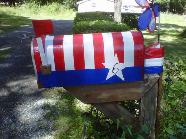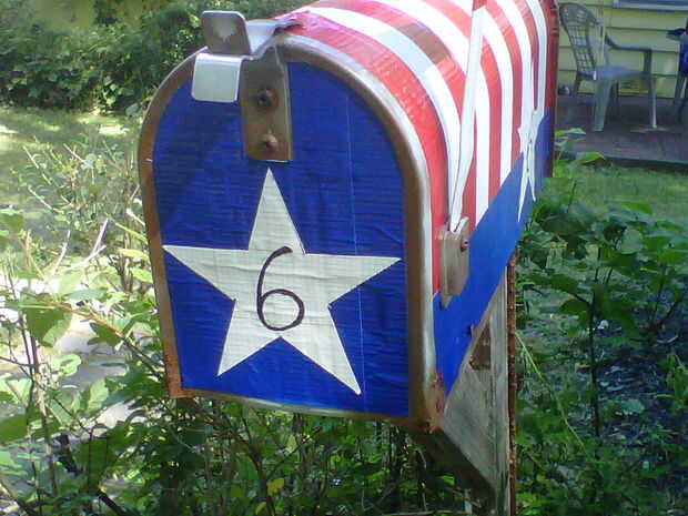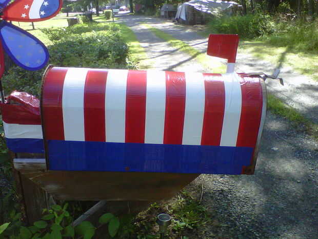 Sólo había reunido todas mis pinturas y comenzó a retirar el cuadro del post cuando mi mujer pasó a buscar a la puerta y dijo: "Hey, ¿por qué están pintando cuando tienes todo rojo, blanco y azul cinta sentados? ¿Por qué no cubren con franjas de cinta de conducto?"