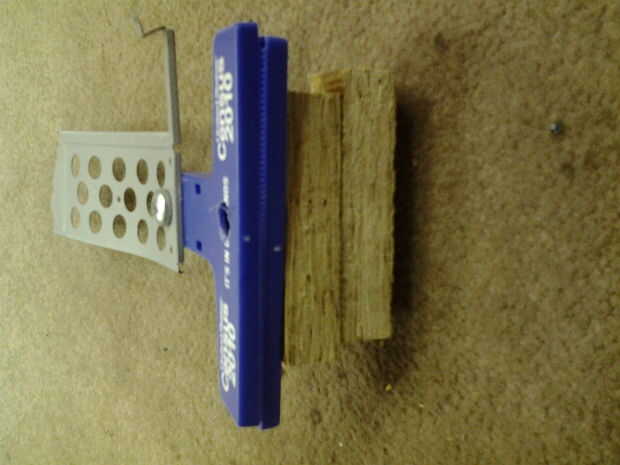 Toma tus dos cuñas o bloques de madera (cuadro #5). Tornillo en el clip para que acaben con un disparo elevado (cuadro #1 otra vez).